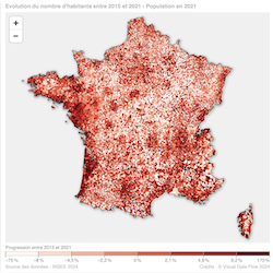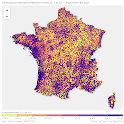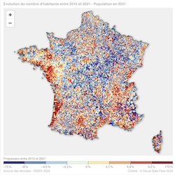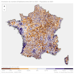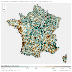 en utilisant les données de l’INSEE, à comparer l'évolution du nombre d'habitants par commune entre 2015 et 2021.